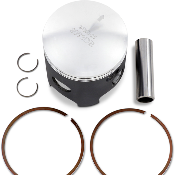 Caracteristicas: Two-stroke pistons are made from 4032 silicium Four-stroke pistons are made from 2618 silicium - the same material used to produce Formula 1 pistons Both include 3% copper in materials for better heat resistance All pistons are forged using a precision heat-treatment process that allows for production tolerances of just .005mm Forged piston tooling allows for the lightest available product Kits include antiwear coated piston, rings, pin and circlips