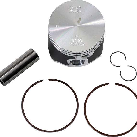 Caracteristicas: All pistons are heat treated with a T-5 hardening and tempering cycle All piston skirts are coated with a high-tech Molybdenum Disulphite coating for faster break-in time and increased piston life Cast piston kits are gravity cast aluminum alloy (not forged) with 18% silicone content, which produces an extremely light but very strong piston Forged pistons are forged from 2618 aluminum for superior strength and durability Forged High Compression pistons improve power and torque across entire rpm range Big Bore pistons increase engineƒ??s displacement, torque, and peak horsepower Forged Replica pistons are forged OE replacements Replica pistons and all rings are OEM replacements Kit include piston, rings, wrist pin and circlips Replacement two-stroke piston rings sold individually; four-stroke piston rings sold as a set as needed Top End Kits include Piston Kit and a Top End Gasket Kit, top-end bearing and cam chain.