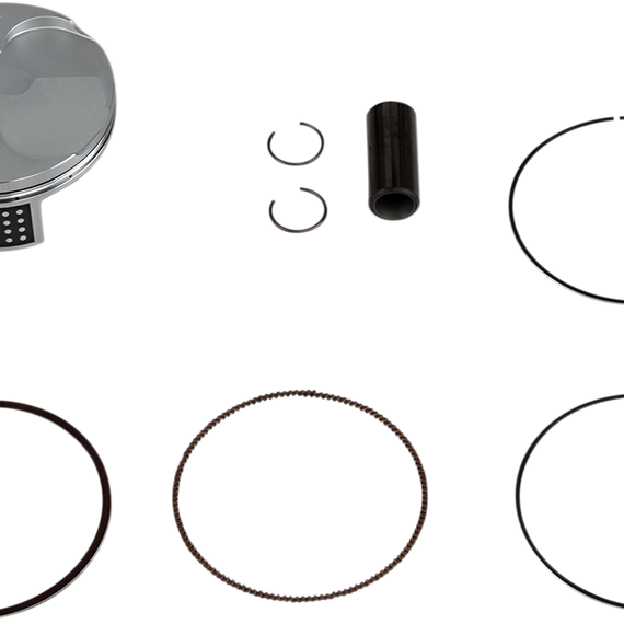 Caracteristicas: All pistons are heat-treated with a T-5 hardening and tempering cycle All piston skirts are coated with a high-tech Molybdenum Disulphite coating for faster break-in time and increased piston life Forged pistons are forged from 2618 aluminum for superior strength and durability Forged High Compression pistons improve power and torque across entire rpm range Forged Replica pistons are forged OE replacements Replica pistons and all rings are OEM replacements Kits include piston, rings, wrist pin and circlips