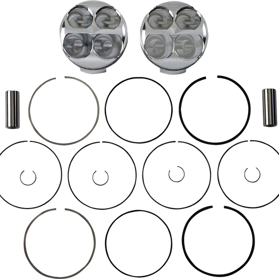 Caracteristicas: Machined from 2618-T6 high-tensile forged aluminum Dome/dish features smooth flowing radii; requires no deburring or preparation Specifically engineered for extreme applications including professional competition Pro Series pistons available for select models: features include internal and external bracing, dedicated embossed forgings for weight reduction, specialized processes such as internal milling the internal struts, along with dedicated accumulator groove and forged side relief Includes Pins, pin fitment, lock and rings Made in the U.S.A.