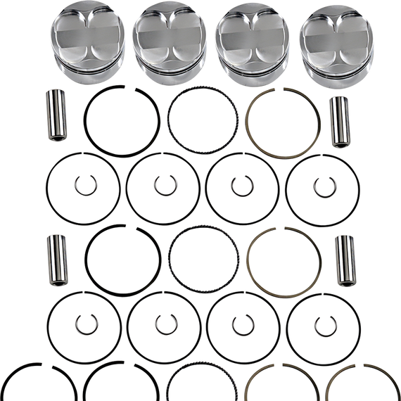 Caracteristicas: Machined from 2618-T6 high-tensile forged aluminum Dome/dish features smooth flowing radii; require no deburring or preparation Specifically engineered for extreme applications including professional competition Pro Series pistons available for select models: features include internal and external bracing, dedicated embossed forgings for weight reduction, specialized processes such as internal milling the internal struts, along with dedicated accumulator groove and forged side relief Includes pins, pin fitment, lock and rings Made in the U.S.A.