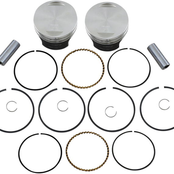 Caracteristicas: Forged piston crown with generous valve pockets for big valves and cams Precision-fit rings selected for each application for ultimate sealing Force-fed pin oiling provides enhanced lubrication of the piston pin Pressure seal groove reduces ring lifting and power loss ArmorGlide® skirt coating reduces friction, providing quieter operation and improving scuff resistance Valued-packaged with two pistons, rings, piston pins and circlips Made in the U.S.A
