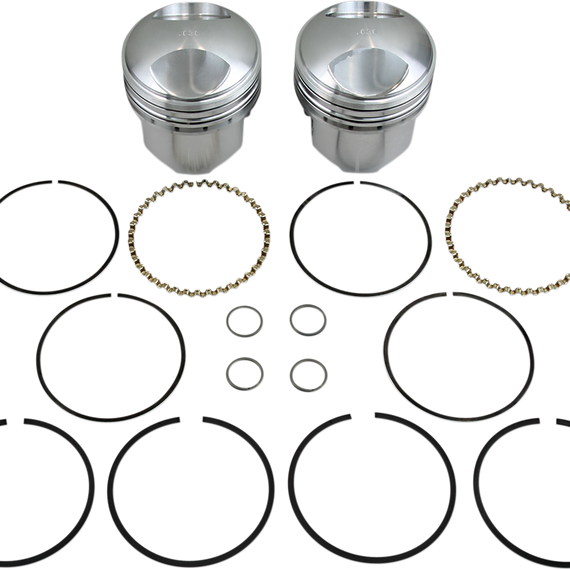 • Each kit contains two pistons, pins, spiral-lock pin clips and Hastings moly rings