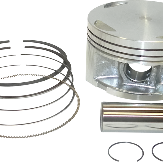 Caracteristicas: Quality and construction that meets or exceeds OEM Feature improved E-clip design Contain piston, rings, pin and clips Additional rings available separately Order one per cylinder Skirts have a nonabrasive, expansion-retarding MOS2 coating to reduce heat and friction for added power and longevity MOS2 coating actually draws heat through piston walls and out the bottom Specially hardened tops add strength to ring grooves