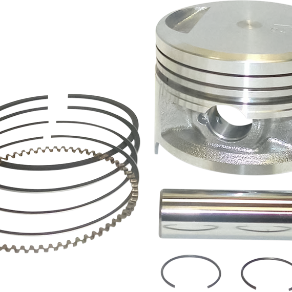 Caracteristicas: Quality and construction that meets or exceeds OEM Feature improved E-clip design Contain piston, rings, pin and clips Additional rings available separately Order one per cylinder Skirts have a nonabrasive, expansion-retarding MOS2 coating to reduce heat and friction for added power and longevity MOS2 coating actually draws heat through piston walls and out the bottom Specially hardened tops add strength to ring grooves