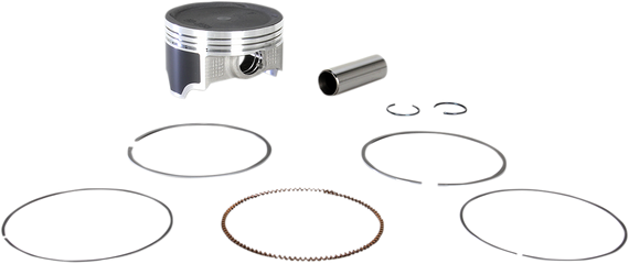 Caracteristicas: Quality and construction that meets or exceeds OEM Feature improved E-clip design Contain piston, rings, pin and clips Additional rings available separately Order one per cylinder Skirts have a nonabrasive, expansion-retarding MOS2 coating to reduce heat and friction for added power and longevity MOS2 coating actually draws heat through piston walls and out the bottom Specially hardened tops add strength to ring grooves
