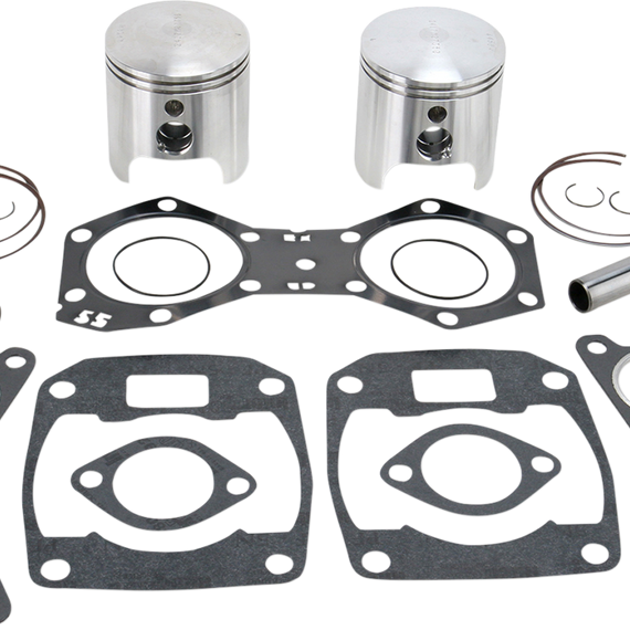 Caracteristicas: Most Wiseco 2-cycle pistons are forged from high-silicone bar stock Greater strength and lower expansion at high temperatures Complete piston kits include High-Performance forged pistons, rings, wrist pins, circlips and top-end gasket kit for one complete engine All Wiseco High-Performance pistons are priced with rings, wrist pins and circlips Wiseco ring types are not interchangeable (i.e., CD is not interchangeable with LC) and fit only Wiseco pistons WARNING: Wiseco pistons can be fitted only with Wiseco rings.