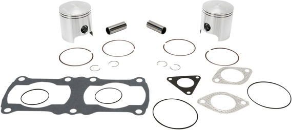 Caracteristicas: Most Wiseco 2-cycle pistons are forged from high-silicone bar stock Greater strength and lower expansion at high temperatures Complete piston kits include High-Performance forged pistons, rings, wrist pins, circlips and top-end gasket kit for one complete engine All Wiseco High-Performance pistons are priced with rings, wrist pins and circlips Wiseco ring types are not interchangeable (i.e., CD is not interchangeable with LC) and fit only Wiseco pistons WARNING: Wiseco pistons can be fitted only with Wiseco rings.