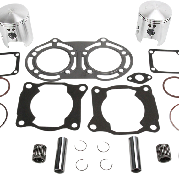 Caracteristicas: Forged from high-silicon aluminum alloy for maximum strength and dependability Contain all necessary components for overboring or rebuilding your top end Feature forged pistons, rings, wrist pins, circlips, and top end gasket Cylinder sleeves must be purchased separately Have additional features over standard Pro-Lite parts Each piston is E-coated on the crown, ring grooves, and pin bore for maximum wear resistance and protection from micro-welding, galling, and detonation Generally have less machining on the outside, which helps seal up the bore for increased compression Additionally, boost ports are removed for a more predictable powerband and increased pull on the top end