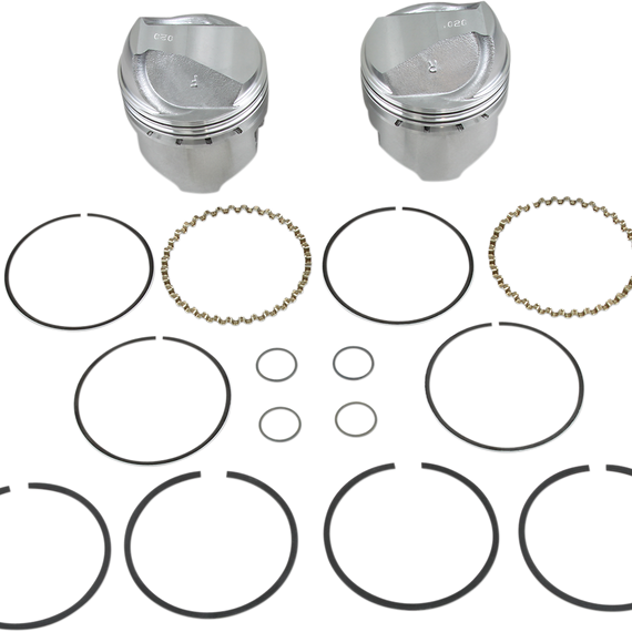 Caracteristicas: Manufactured from high-strength, T-5, heat-treated, 390 hypereutectic aluminum alloy Allow a tighter fit and longer piston and ring life Diamond-machined pistons are held to plus or minus one gram weight and less than one-half-thousandth-inch (.0005") tolerances from piston to piston Each kit contains two pistons, pins, spiral-lock pin clips and Hastings moly rings Replacement piston rings and pin lock rings available separately KB pistons can be installed tighter than other pistons. This results in less piston rock and better ring seal. Please read instructions included with piston for correct piston clearance. Due to the thermal conductivity and design of KB pistons, special attention is required to the top ring end gap. Please read instructions furnished with piston for correct ring installation.