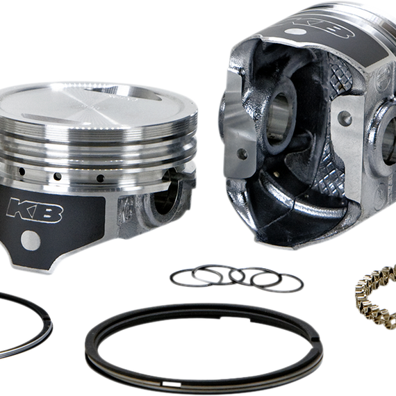 Caracteristicas: Manufactured from high-strength, T-5 heat-treated, 390 hypereutectic aluminum alloy Allows a tighter fit and longer piston and ring life Diamond-machined pistons are held to plus or minus one gram weight and less than one-half-thousandth-inch (.0005") tolerances from piston to piston Each kit contains two pistons, pins, spiral-lock pin clips and Hastings moly rings Replacement piston rings sold separately KB pistons can be installed tighter than other pistons. This results in less piston rock and better ring seal. Please read instructions included with piston for correct piston clearance Due to the thermal conductivity and design of KB pistons, special attention is required to the top ring end gap. Please read instructions furnished with piston for correct ring installation Use lock rings Part #0913-0001 (4-pk)
