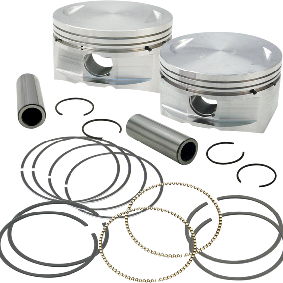 Caracteristicas: Increase the displacement of 883cc and 1200cc engines to 1250cc at 10.3:1 compression Cast Flat-Topped Replacement Piston Kits For 1984-'99 HD® Big Twins with Stock Heads or S&S Performance Replacement Heads May be used with stock 1200cc cylinder heads, but S&S CNC ported heads are recommended Stock 1200cc cylinders and 1986-'2003 883cc cylinders may be bored to accept the 3-9/16" bore 1250cc pistons, but 2004-'16 883cc cylinders may not be used