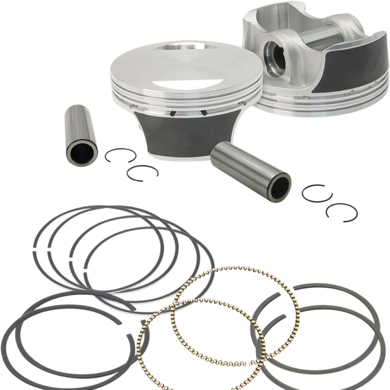 Caracteristicas: Increase the displacement of 883cc and 1200cc engines to 1250cc at 10.3:1 compression Cast Flat-Topped Replacement Piston Kits For 1984-'99 HD® Big Twins with Stock Heads or S&S Performance Replacement Heads May be used with stock 1200cc cylinder heads, but S&S CNC ported heads are recommended Stock 1200cc cylinders and 1986-'2003 883cc cylinders may be bored to accept the 3-9/16" bore 1250cc pistons, but 2004-'16 883cc cylinders may not be used
