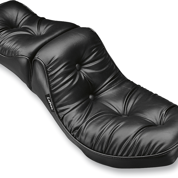 Caracteristicas: Plush, two-piece pillow style assembled on a sturdy steel baseplate Features durable black Naugahyde® covers accented by recessed buttons over high-density foam Carpeted base helps protect painted surfaces Made in the U.S.A. Will not fit FXR SuperGlide unless OEM hinge assembly is purchased.