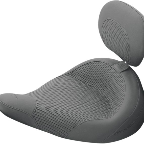 Caracteristicas: Top-quality expanded vinyl cover Baseplate is constructed on triple-layered fiberglass Backrest is easily removed and installed without tools; folds forward for easy mounting of bike Textured style matches OEM seat Made in the U.S.A.