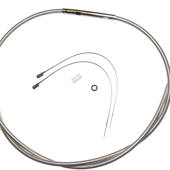 Caracteristicas: Polished stainless steel braid is brighter than standard stainless Braid color and weave matches on all Magnum control cables and brake lines Coated with a non-yellowing, crystal clear FEP fluoropolymer outer jacket for exceptional protection against scuffing paint or chrome Low effort, high efficiency cable design meets or exceeds all OE specifications for fitment, construction, and endurance All fittings are polished Attractive adjuster with integrated water resistant seals does not require a boot Rubber seal in transmission fitting eliminates fluid leaks All cables are made with anti-friction inner liners, nylon adjuster inserts, and are factory lubricated for smooth, consistent, long lasting operation Assembled in the U.S.A.