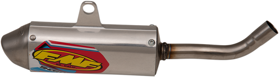 Caracteristicas: The most popular 2-stroke silencers in FMF's arsenal The elliptically shaped bodies with perforated core perform well in any condition Equipped with a Performance Flow end cap and nickel-plated front stinger