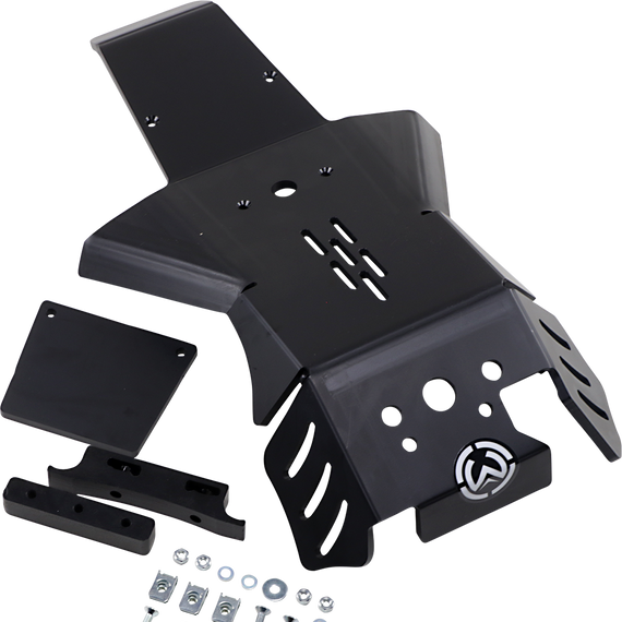 Caracteristicas: Made from a flexible high-density polyethylene HDPE is an excellent material; a technical plastic which offers many characteristics to protect your bike 6 mm thick for maximum protection of the frame and cases Goes through a thermoforming process and welded 40% lighter than 4 mm aluminum No more vibrating or rattling Mounting hardware and installation instructions included