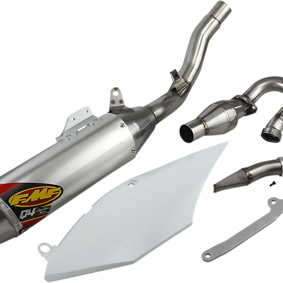 Caracteristicas: The Q4 employs intricate chambers, baffles and proprietary multistage packing material With the Q4 you don’t need to hear the power, just feel the power! Less sound equals more ground Meets USFS and FIM World Enduro sound regulations Power gains throughout the entire rpm range Spark arrestor included Pounds lighter than stock Rugged design for off-road endurance Made in the USA