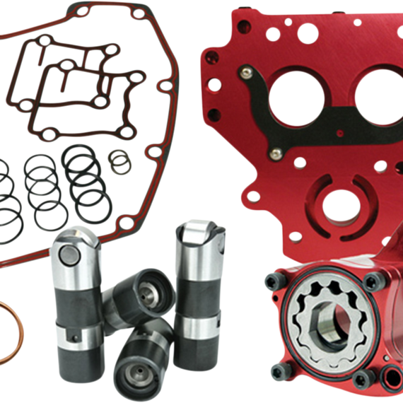 Caracteristicas: Combine all the needed components to finish your T/C® engine's oiling system These kits increase oil pressure, oil volume, engine oil flow and return oil scavenging, eliminating wet sumping and oily air cleaners; test results show 25-35 degree cooler engine temperatures, 15-30 degree cooler oil temperatures, 15-30 more lbs of oil pressure and quieter smoother engine operation; results also show a substantial increase of oil pressure and 3 H.P. and 4 ft/lbs. of torque to the rear wheel Includes bearing retainer plate and hardware.