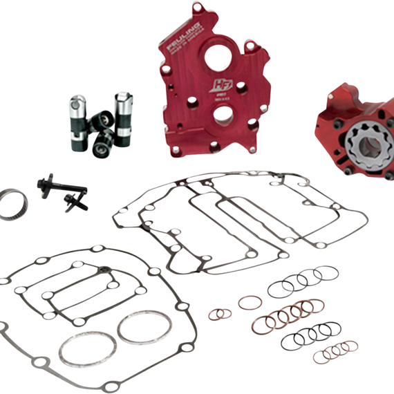 • These kits increase oil pressure, oil volume, engine oil flow and return oil scavenging, eliminating wet sumping and oily air cleaners; test results show 25-35 degree cooler engine temperatures, 15-30 degree cooler oil temperatures, 15-30 more lbs of oil pressure and quieter smoother engine operation; results also show a substantial increase of oil pressure and 3 H.P. and 4 ft/lbs. of torque to the rear wheel
