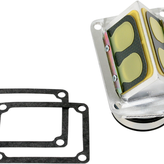 Caracteristicas: Maintain flow velocity through the valve and redirect intake charge for more even distribution to intake ports Provide quicker, sharper throttle response and more horsepower throughout rpm range Specially-designed reed cage holds Boyesen's patented dual-stage reeds Boyesen's hot RAD valves ratchet up your torque One-piece cast aluminum bolts in easily Order one set per cylinder