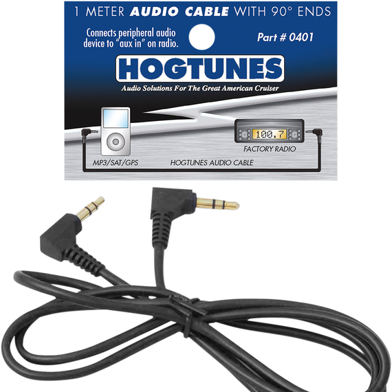 Caracteristicas: 3.3' (One-meter) stereo audio cable with 90° ends Connects your MP3/Satellite radio/GPS to the "aux in" on your bike's radio High-quality gold-plated connectors Perfect accessory for HF-Bag