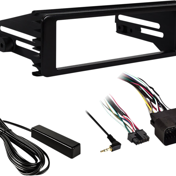 Caracteristicas: ISO DIN radio provision with pocket ASWC-1 interface in water resistant enclosure included to retain handlebar audio controls 44-UA20 antenna included Wiring harness included Antenna Adapter 44-UA20 included