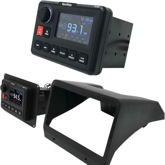 Caracteristicas: Large 3” TFT Multi-Line Full-Color LCD AM/FM/Weatherband Tuner Rear USB port for Playback and Charge (Provides 5 volts DC, 2.1A) Displays MP3 ID3 Tag Information Built-In Bluetooth with A2DP Music Streaming, AVRCP Remote Control and ID3 Tag Information 3 Band Tone Control (Bass, Mid, Treble) Programmable Turn-on Volume 3 Pairs of RCA Preamp Outputs (Front/Rear/Sub) 1 Pair of Rear Aux Inputs (RCA) 7 Selectable EQ Curves (User, Flat, Pop, Jazz, Classic, Beat, Rock) Rear View Camera Input (RCA) Digital Audio Output (Coaxial) UV-Resistant Faceplate and Trim Ring Conformal-Coated Circuit Boards Zero Current Draw Memory Back-up to Save the Battery when Idle. Low Battery Indicator IPX6 Rated Waterproof CanAm X3 KIT for the DXU1100DVR NavAtlas DPX330 CanAm X3 Face Plate for the NA30C to fit the X3KIT Dash KIT Dash kit adapter for the NavAtlas X3KIT for installation of the NavAtlas NA30C
