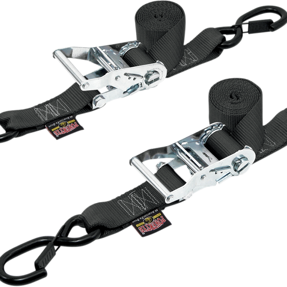 • 1-1/2" ratchet tie-downs with vinyl-coated secure hook ends