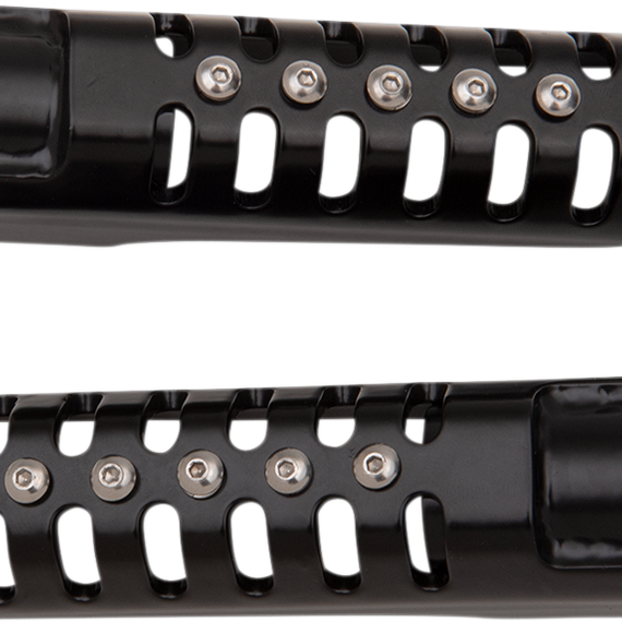 Caracteristicas: Powder-coated steel pegs offer good lean angle with their slash style bottom edge Traction screws line the top surface for added grip Screws can be installed with the provided split lock washers, or give them an even more aggressive bite by removing the lock washers and installing the screws with heavy-duty Loctite®? for more exposed screw through the top Fit most H-D clevis mounts