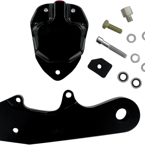 Caracteristicas: Raw metal on black contrast calipers is anodized for a long-lasting high-quality finish Two piston designs for various H-D models (including rigid frames) Hanger brackets and brake pads included For use with 11.5" rotors Made in the U.S.A. The OLD-STYLE Wagner and Kelsey-Hayes (die-cast aluminum OEM) on rear applications have a 3/4" bore master cylinder and WILL NOT WORK CORRECTLY. Not recommended for use with imported stainless steel rotors. Requires use of 5/8" bore master cylinder.
