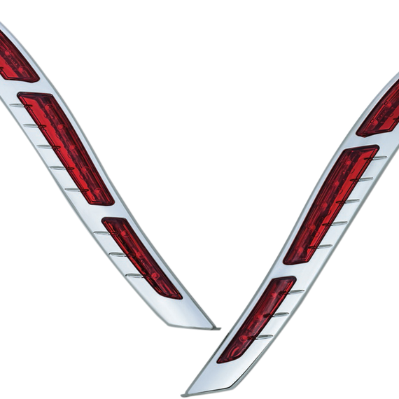 Caracteristicas: Chrome housing has a gentle curve and contains a series of bright red dual-function LEDs Strips measure approximately 12" long Plug-and-play wiring installation Install quickly using high-strength 3M VHB adhesive