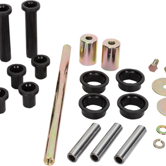 Caracteristicas: Cost-effective kit containing all bearings, bushings, seals, shafts and miscellaneous components to repair the rear upper and lower A-arms and knuckle Two kits required per vehicle