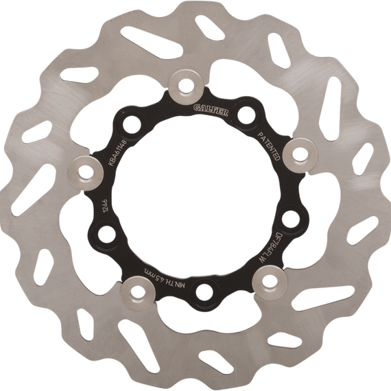 Caracteristicas: Laser-cut double disc ground 420 high carbon stainless steel Direct-replacement brake rotors; do not require any extra parts, bolt on just like a stock brake disc Full-floating design rotors have an aluminum center carrier Improves brake lever feel and modulation Rotors cool as they rotate to lower brake operating temperatures Design is self-cleaning, removes water as it rotates Less tendency to warp Manufactured in Spain For maximum braking performance and rotor longevity, Galfer recommends using Galfer brake pads with Galfer rotors.