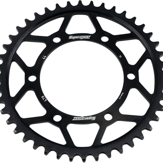 Caracteristicas: Developed on the race track to give longer system life and high performance for street and off-road applications Using CAD designed and CNC-Laser cutting to ensure an exact fit on the wheel Made to Supersprox high quality standards and including out exclusive (2XZINK) anti corrosion black finish One of the lightest steel sprockets on the market Factory styling for a great look