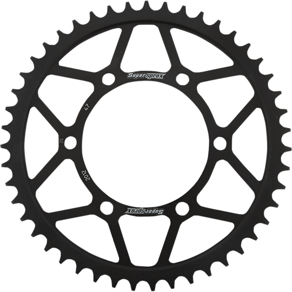 Caracteristicas: Developed on the race track to give longer system life and high performance for street and off-road applications Using CAD designed and CNC-Laser cutting to ensure an exact fit on the wheel Made to Supersprox high quality standards and including out exclusive (2XZINK) anti corrosion black finish One of the lightest steel sprockets on the market Factory styling for a great look
