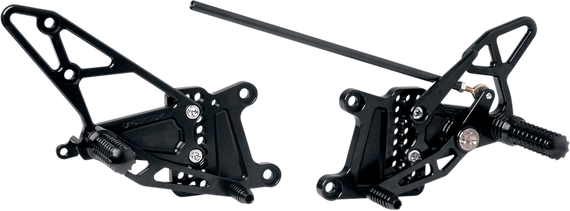 Caracteristicas: GP shift compatible by reversing stock shift arm CNC-machined from 6061 aluminum for strength, low weight, and durability Dual ball bearing shift and brake pedals provide smooth and consistent action Rounded edges prevent race boots from getting snagged on heel guards while riding Race grip foot pegs increase rider confidence and chassis feedback