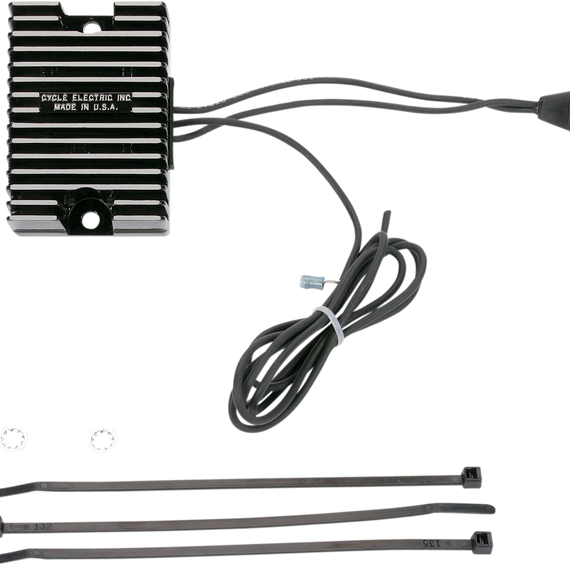 • Cycle Electric rectifying regulators block current to control voltage; this reduces stator current, resulting in low temperature and less drag on the motor, which means more efficient operation