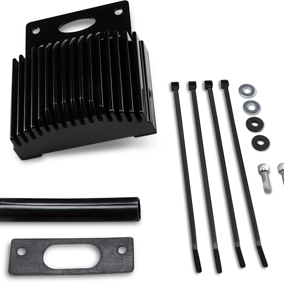 Caracteristicas: Keeps the regulator away from the hot oil cooler to ensure long service life High mount regulator hangs from the upper cross member on the front frame down tubes
