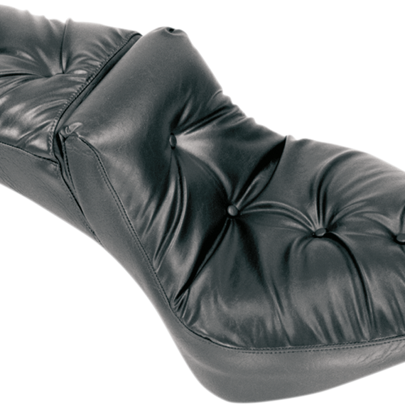 Caracteristicas: Split foam construction on a single steel base plate Well-padded and features a leather-like expanded vinyl covering Designed to keep driver from sliding forward Made in the U.S.A.
