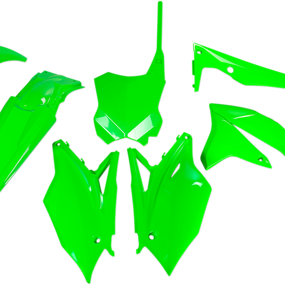 Caracteristicas: Pre-drilled pieces mount easily to stock locations Body kit includes front and rear fender, radiator covers, side panels and front number plate; OEM matches stock bike color Easy bolt-on installation Made in Italy