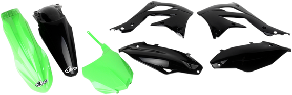 Caracteristicas: Pre-drilled pieces mount easily to stock locations Body kit includes front and rear fender, radiator covers, side panels and front number plate; OEM matches stock bike color Easy bolt-on installation Made in Italy