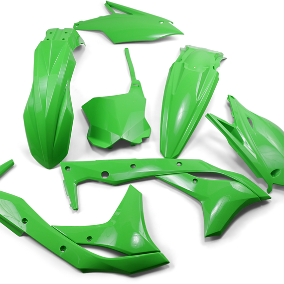• Body kit includes front and rear fender, radiator covers, side panels and front number plate; OEM matches stock bike color