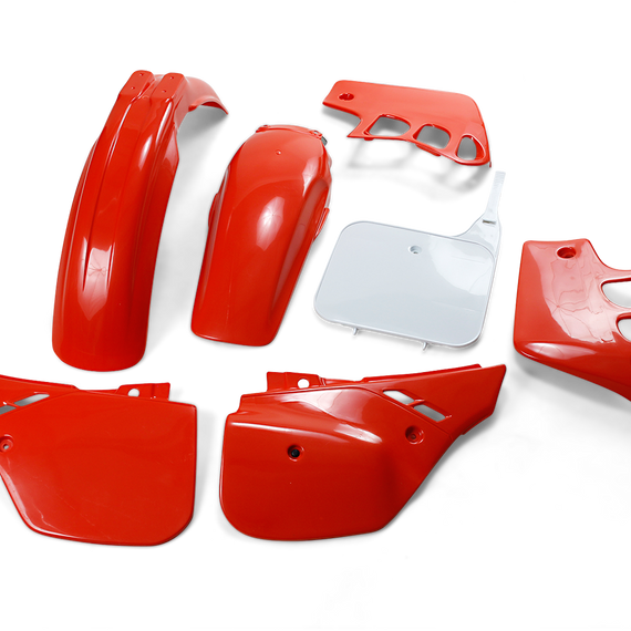 • Body kit includes front and rear fender, radiator covers, side panels and front number plate; OEM matches stock bike color