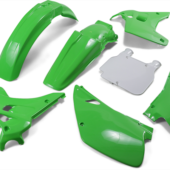 Caracteristicas: Pre-drilled pieces mount easily to stock locations Body kit includes front and rear fender, radiator covers, side panels and front number plate; OEM matches stock bike color Easy bolt-on installation Made in Italy