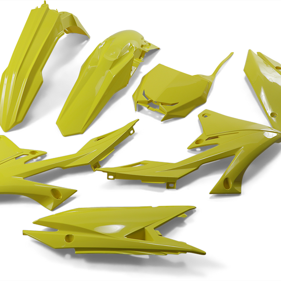 • Body kit includes front and rear fender, radiator covers, side panels and front number plate; OEM matches stock bike color