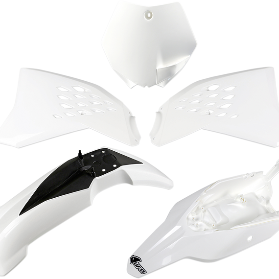 Caracteristicas: Pre-drilled pieces mount easily to stock locations Body kit includes front and rear fender, radiator covers, side panels and front number plate; OEM matches stock bike color Easy bolt-on installation Made in Italy