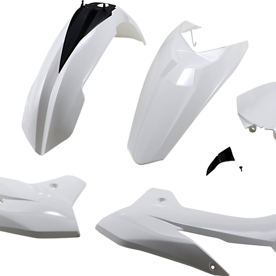 • Body kit includes front and rear fender, radiator covers, side panels and front number plate; OEM matches stock bike color