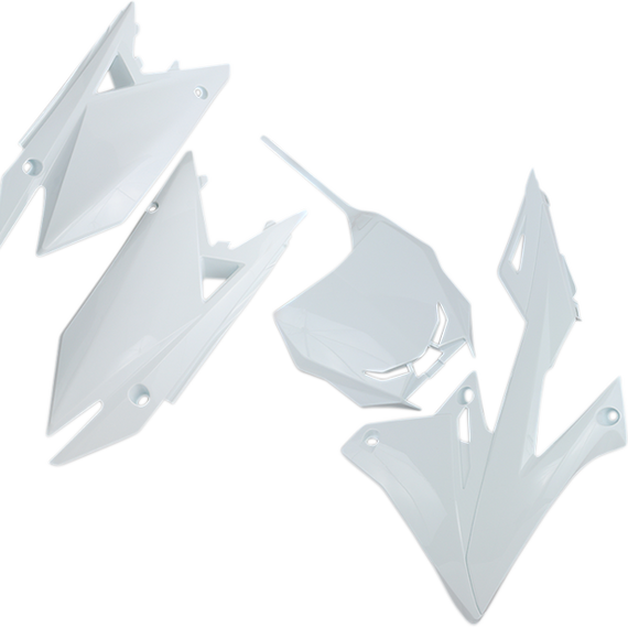 Caracteristicas: Pre-drilled pieces mount easily to stock locations Body kit includes front and rear fender, radiator covers, side panels and front number plate; OEM matches stock bike color Easy bolt-on installation Made in Italy